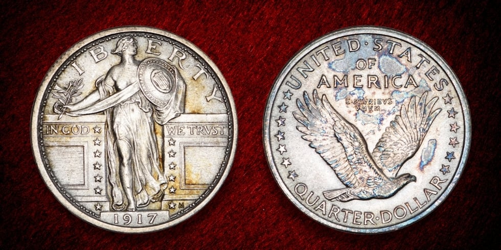 ▲ U.S., Standing Liberty Quarter, silver, 1917 | ANA #1876.6.6