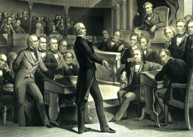 ▲ AN 1855 PAINTING shows Henry Clay addressing the U.S. Senate. Clay and Stephen Douglas developed a compromise plan called "popular sovereignty" that allowed the creation of the single state of California and other states in the future. Photo: Library of Congress